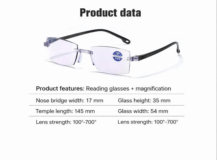 🧠🔍 An integrated smart algorithm makes the lenses "think": They smoothly adjust to every distance. The transition between near and far vision is as seamless as flowing water. One pair of glasses for your entire world.🛡️💻 High-end blue light protection protects your eyes from digital stress.☁️🕊️ Made from high-tech lightweight materials used in aviation – so light you'll hardly feel the glasses.🧘♂️🍃 With innovative negative ion technology for relaxed vision, even on long days.