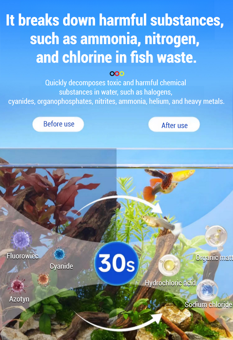 ⏱️ 1-minute rapid purification – no more waiting🧪 Polymer formula – absorbs and breaks down impurities💧 Powerful chlorine removal – protects fish gills🌿 Rapid algae elimination – prevents water deterioration🧹 Breaks down waste & leftover food – reduces ammonia🐟 Works in all tanks: freshwater, saltwater, nano, large🎁 6 for $57 – crystal clear water all month