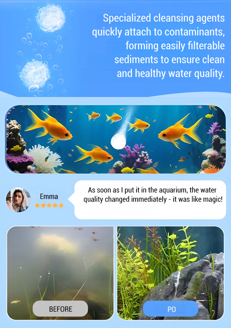 1-Minute Fast Water Purification – Turns Murky to Crystal Clear⏱️ [One-Minute Water Purification] Powerful Aquarium Water Clarifying Tablets🧪 Polymer Technology – Powerful Chlorine & Algae Removal
